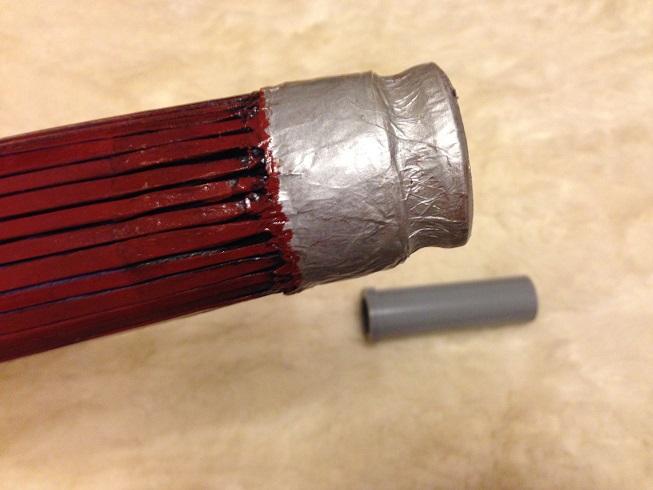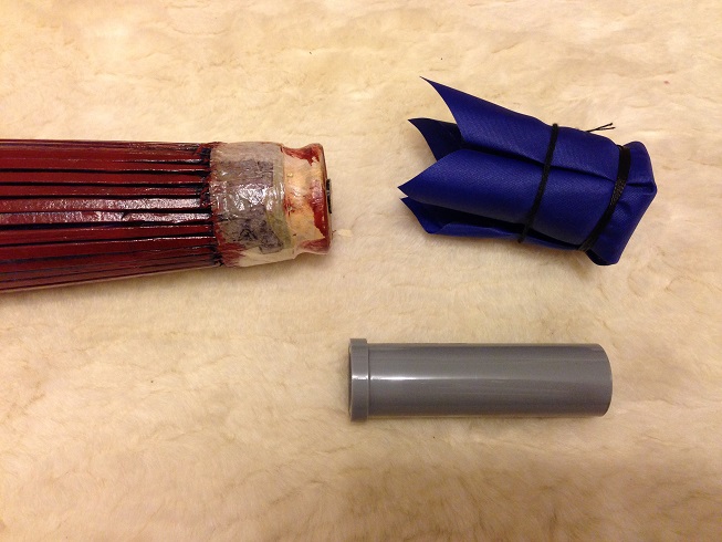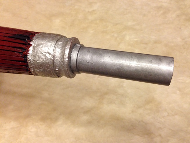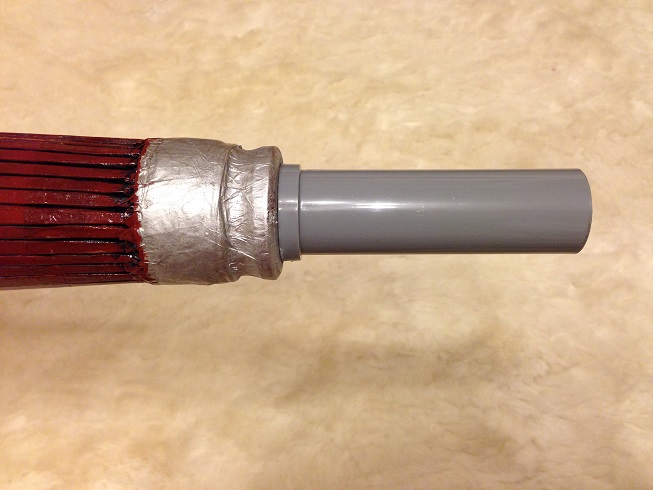 隙間テープと結合部にも接着剤を塗り、傘の柄の穴に入れ接着剤で繋げます。